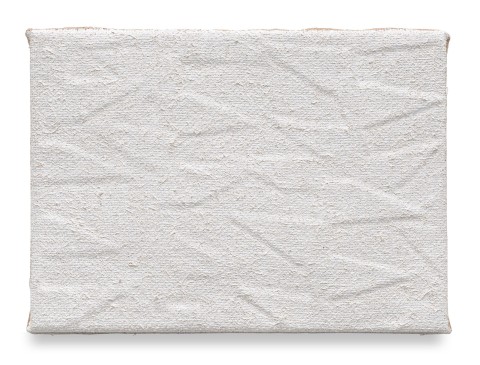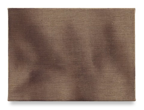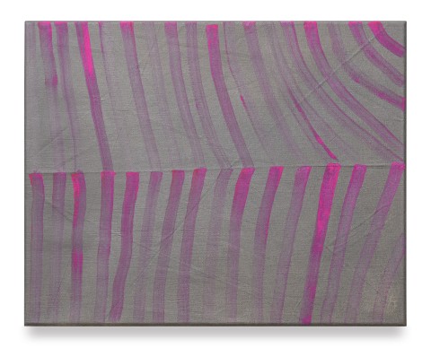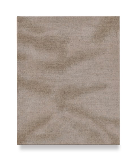 This attention to movement extends into a deeper dialogue with material. Select works are executed on jute, a coarse, fibrous surface that allows the weave to shape the image. The uneven texture catches light differently across its plane, casting shifting shadows that animate the work. Others are painted on pre-processed linen, where visible folds in the canvas are not incidental but serve as structural lines, lending quiet order to gesture. In works on raw linen, color seeps into the fibers, merging with the ground beneath. Paint does not merely rest on the surface; it activates the underlying material. Volume unfolds through subtle tonal transitions rather than through illustrated light and shadow.