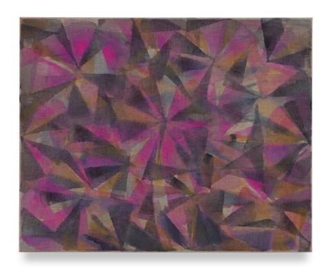 Stolz’s process springs from a fascination with layered geometric structures, where depth arises without reliance on linear perspective. For this new body of work, she developed a vocabulary of brushwork that articulates sharp, angular structures within the medium’s inherent fluidity. Forgoing outlines or sketches, forms are instead established through the act of painting itself. Through repetition and layering, she gradually constructs spatial tension, turning color into light and shadow through compositional rhythm. Her resulting paintings no longer rest on a single viewpoint but generate depth from within their own making.